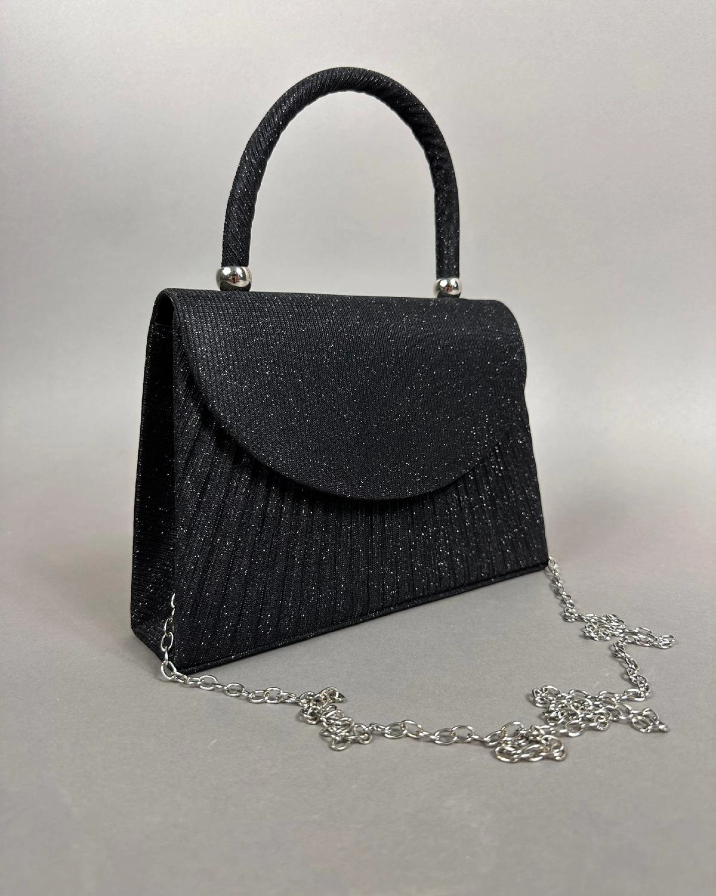 Clutch negru material satinat si lurex