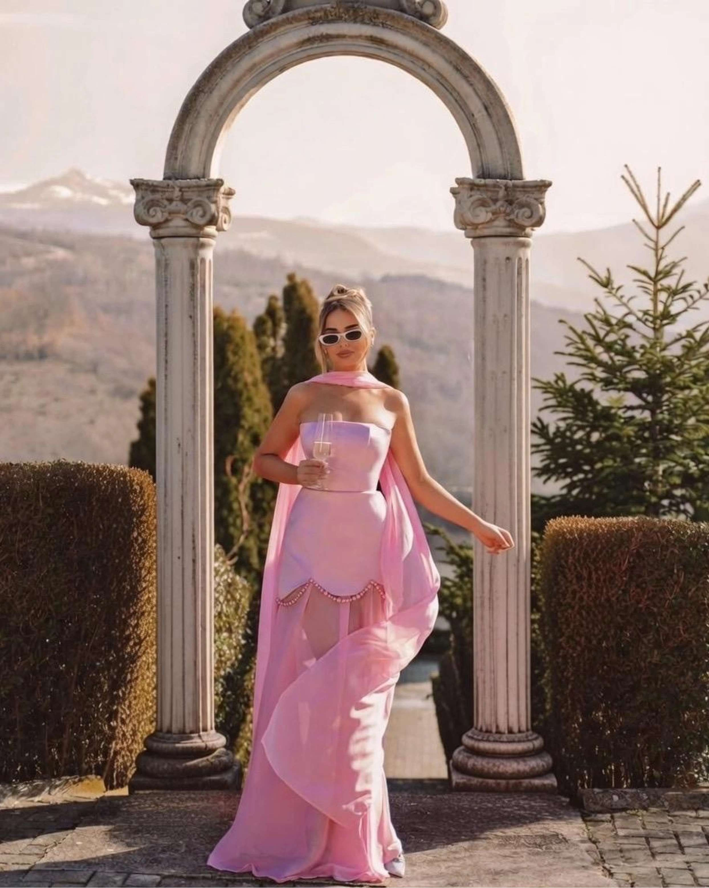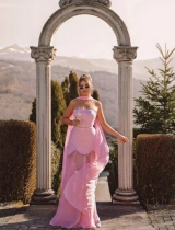 Rochie maxi Tulum top corset cu fusta Roz