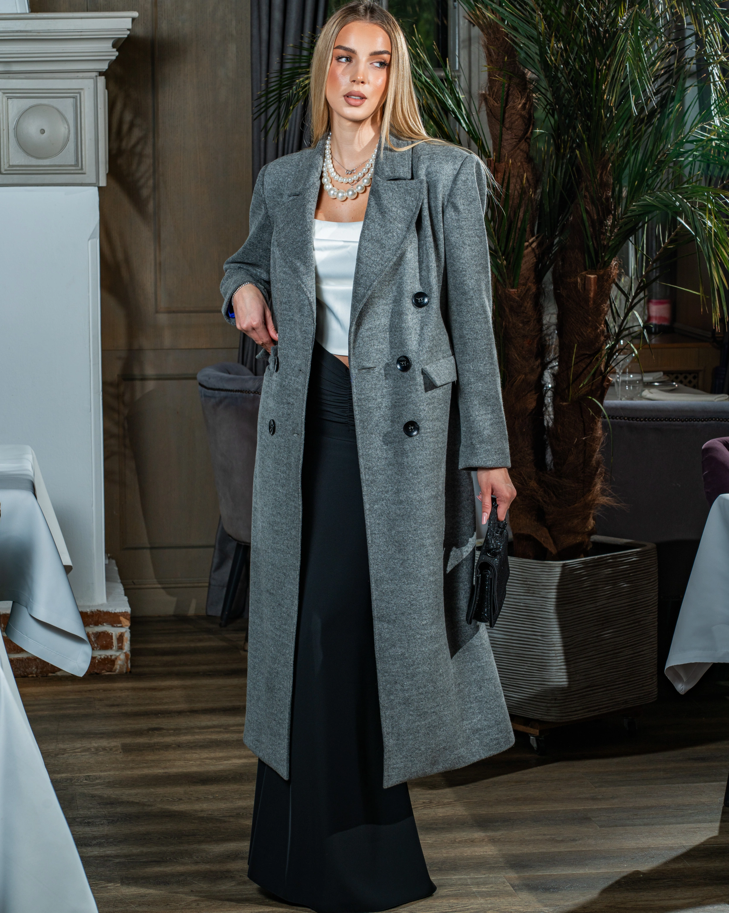 Paltonul Casual are o croială structurată, și include detalii clasice, cum ar fi reverele și nasturii din față, care îi conferă un aspect elegant și bine definit. Acesta are un aer modern și rafinat.