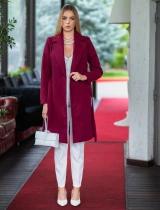 Paltonul Lady are o nuanță profundă de grena și un design modern, cu o croială dreaptă și curea în talie, care oferă un look rafinat și versatil. Este confecționat dintr-un material de stofa pentru palton, are revere largi, adăugând un plus de eleganță.