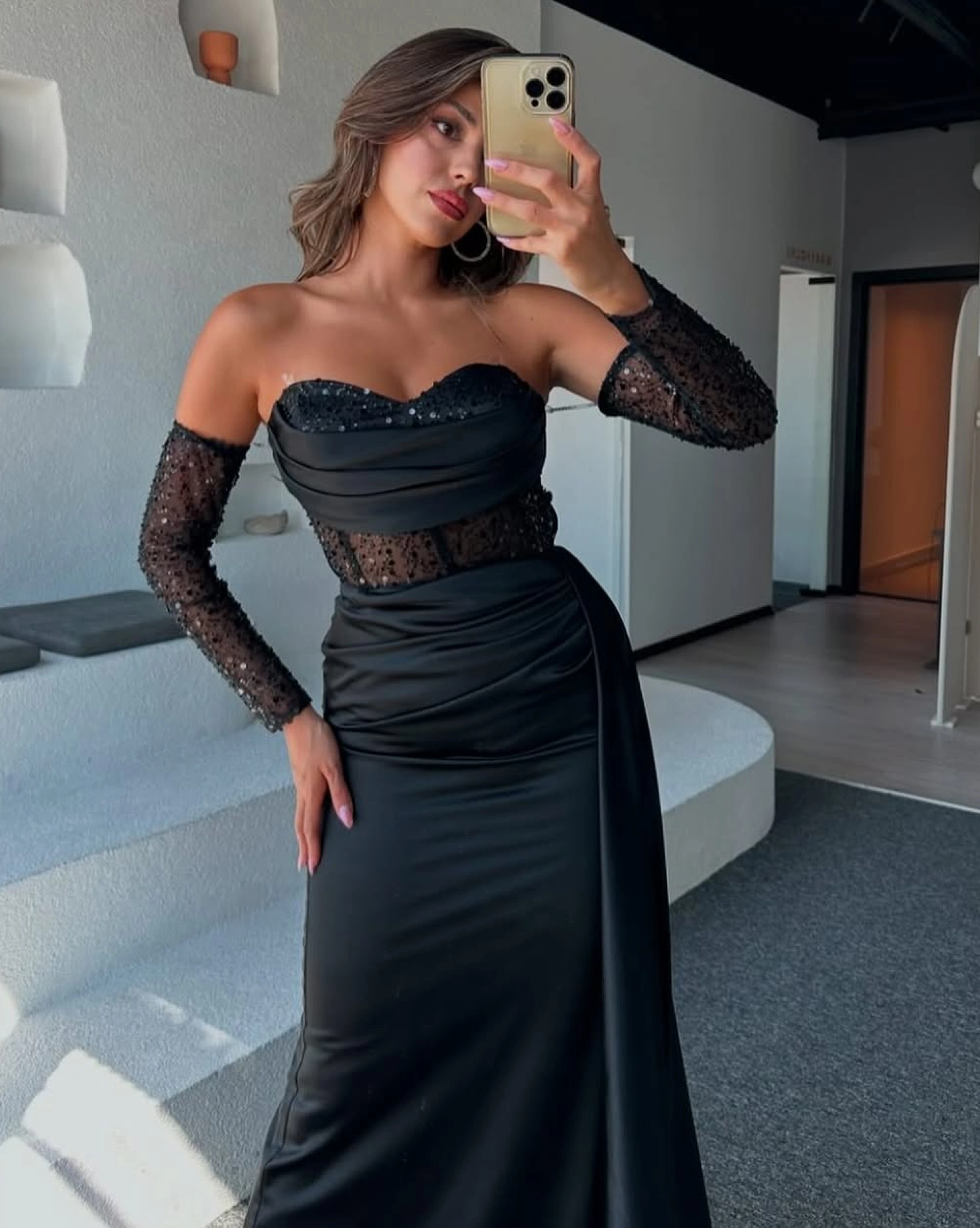PRIYA este o rochie lungă cu aer seducător și detalii rafinate, creată pentru apariții care atrag toate privirile. Designul fără bretele evidențiază linia umerilor, iar bustul delicat decorat adaugă un plus de strălucire și feminitate.