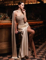 Rochie lunga Monna Nude bust cu textură glitter
